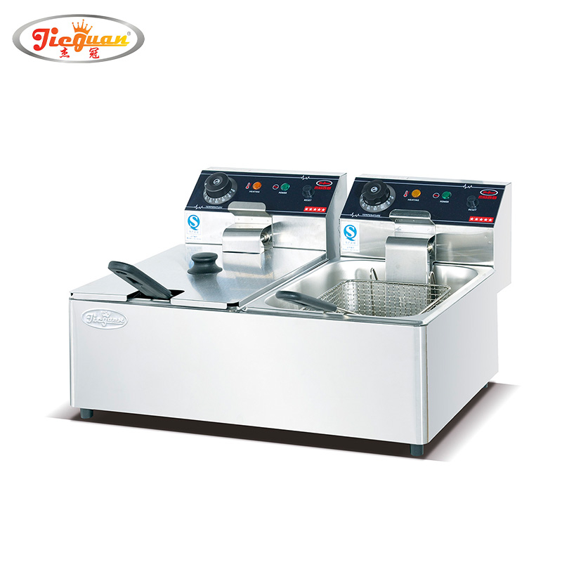 Una friggitrice commerciale a doppio serbatoio è un sistema a olio caldo a due camere . Supporta un servizio più rapido e una migliore separazione dei prodotti.